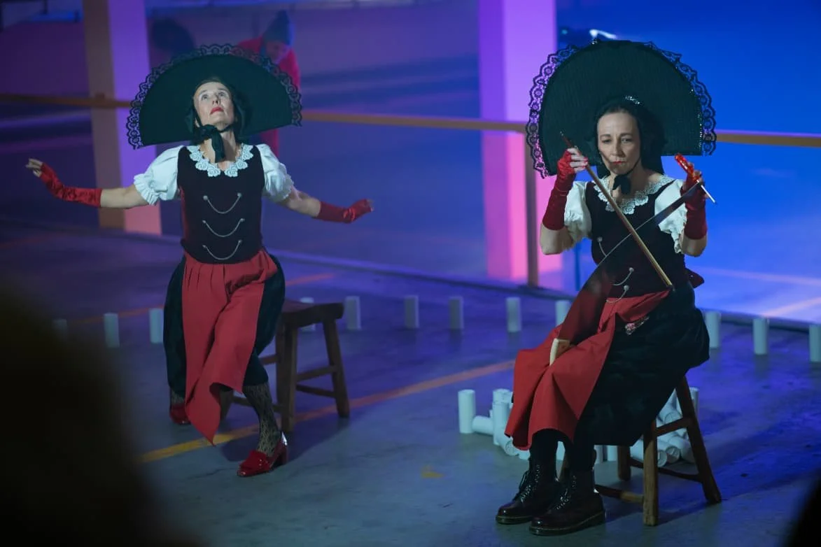 “Wo jeder jeden kennt! Wo man sich verkleidet. Wo man Rollen spielt. Wo man sich genötigt sieht, am gesellschaftlichen Leben Teil zu nehmen, um nicht in Verdacht zu geraten, man würde sich nicht für die eigenen Leute interessieren! Wo der öffentliche Raum vergiftet ist mit Intrigen, die aus Gerüchten gewachsen sind. In unserer Performance werden zwei Trachtenfrauen einen rituellen Vorgang zeigen. Die eine spielt auf der singenden Säge und erzeugt dabei Klänge, die ähnlich wie Gerüchte im Ungefähren bleiben. Die andere lässt sich von den Klängen zu tänzerischen Bewegungen animieren, sie nimmt die Gerüchte auf, verarbeitet sie und flüstert sie in Gerüchte-Streuer ein, die um sie herum am Boden stehen. Diese dienen eben dazu, Gerüchte zu streuen und zu verbreiten. Die Gerüchte-Streuer sind neutral weiss gestaltet und wirken auf den ersten Blick harmlos.”